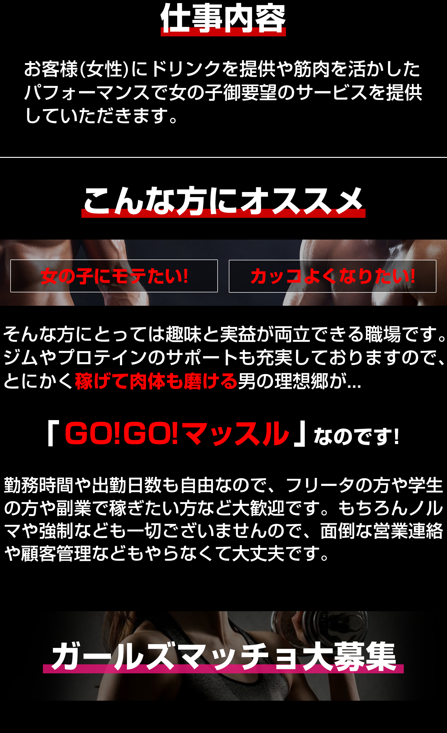 大丈夫です!お店のコンセプトが「筋肉」なので筋肉がある方のほうが人気になりやすいので結果的に稼げる可能性が高いです。
